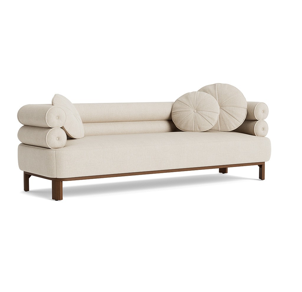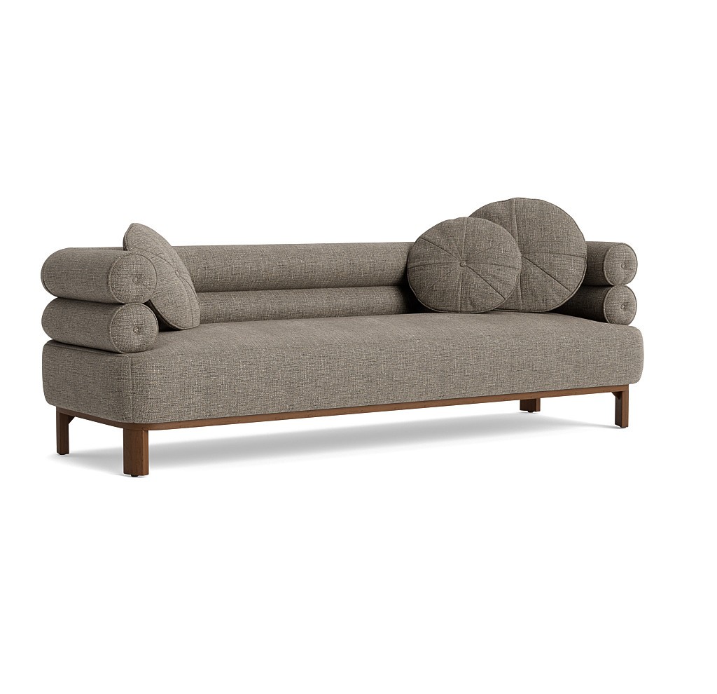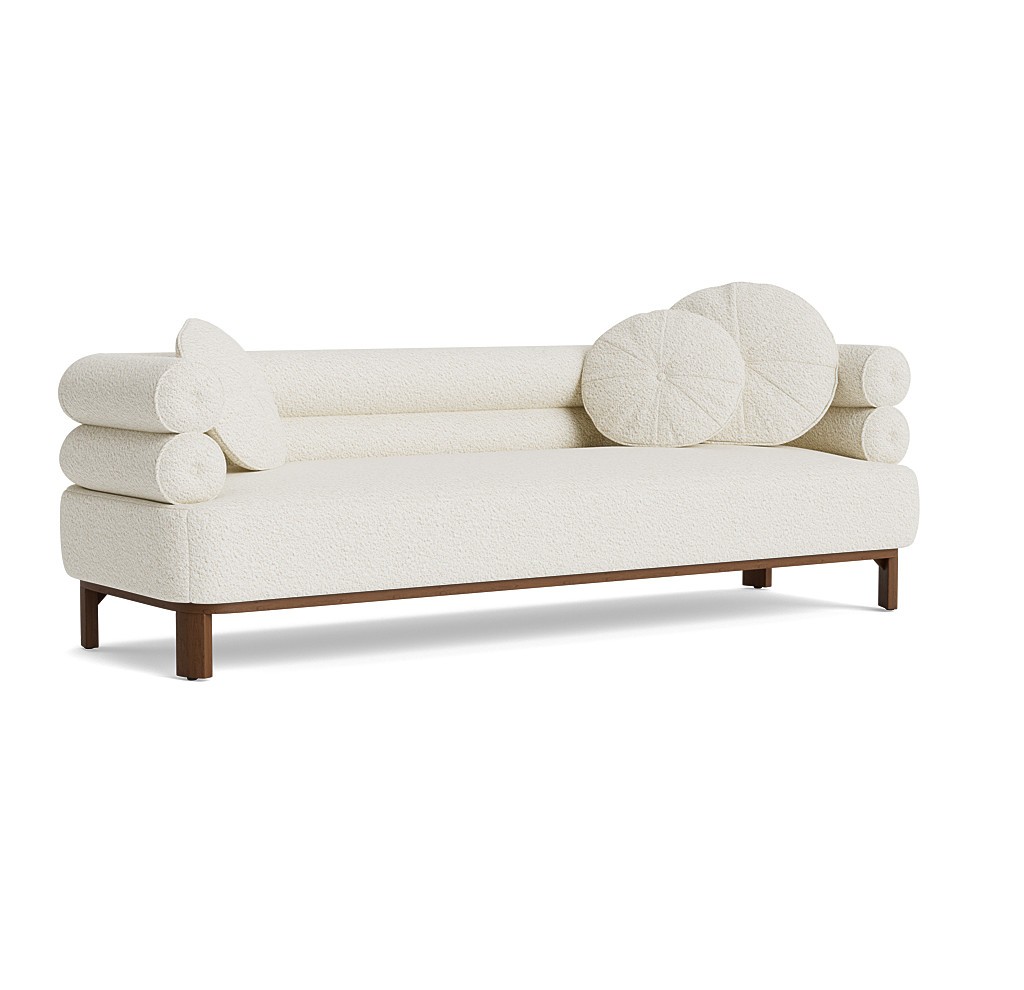 Balancing architecture, high-fashion, and Art Deco curves, the Lucy collection brings a statement-making focal point to a room. Two rows of distinct tube-like cushioning offer sheltering comfort while loose round pillows add a level of modern sophistication. Seated on a warm wood frame with angled legs, this collection includes a sofa, chair, and a choice of right or left arm day beds. Available to customize on hundreds of fabrics and 20+ wood finishes.
