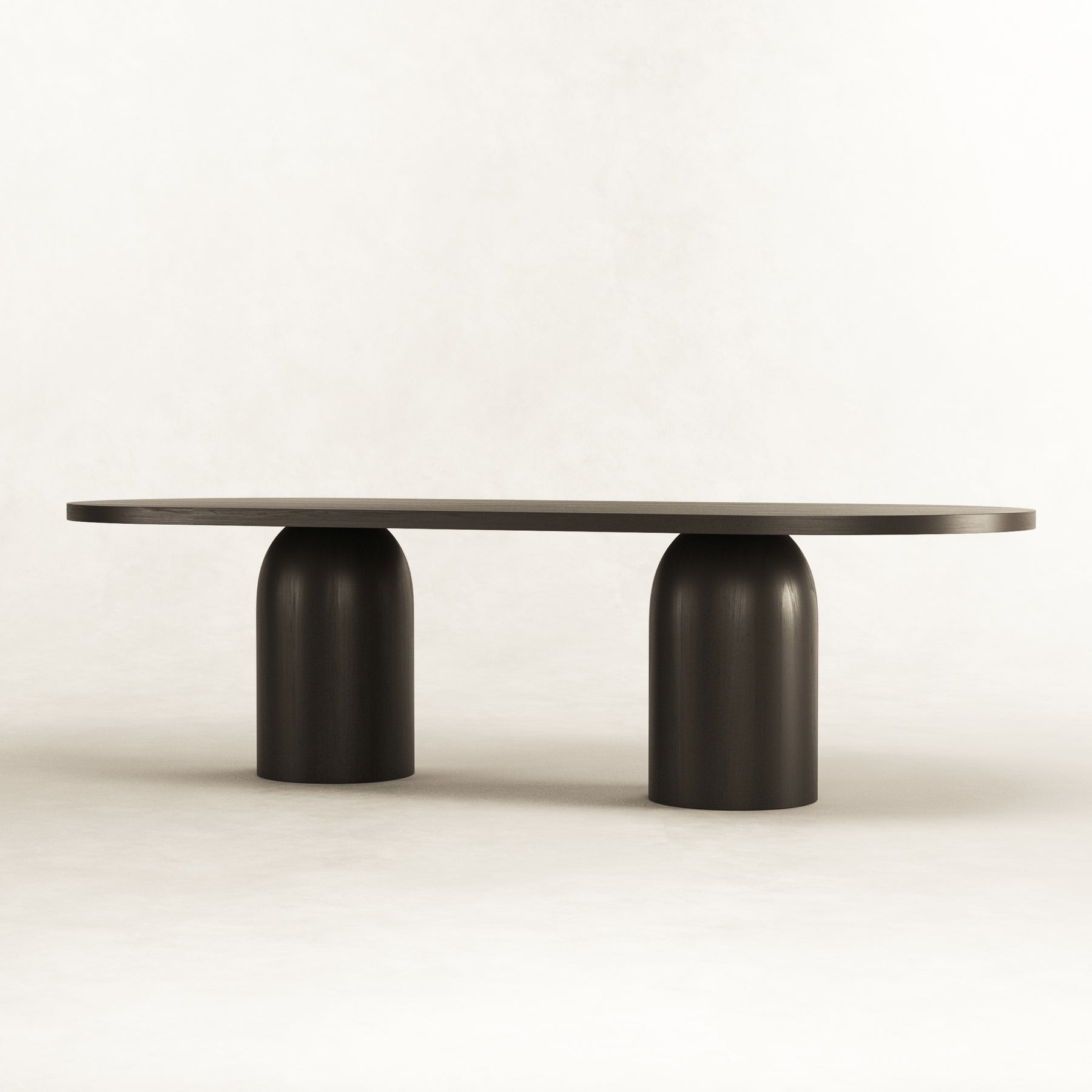 The Bullet wood dining table evokes architectural structure and form with its featured domed base being the centre of attention. Crafted by hand from a combination of solid and ash wood veneer, the dining table is neutral in finish giving it a warm look that will blend in with most colour schemes. An intricate design to manufacture, ensuring stability, form and aesthetic appeal all in one magnificent table. Measuring a generous 2.7m in length, 8-10 seats should fit comfortably around this designer table.