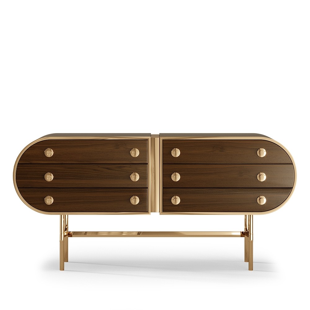 The retro-chic design from the Moryson Sideboard was the pure inspiration that brings the 60’s design legacy reborn in this new concept. With six drawers finely accentuated with stylish handlers that seem to give us the illusion of a safe box, this sideboard is the best choice for all mid-century admirers.