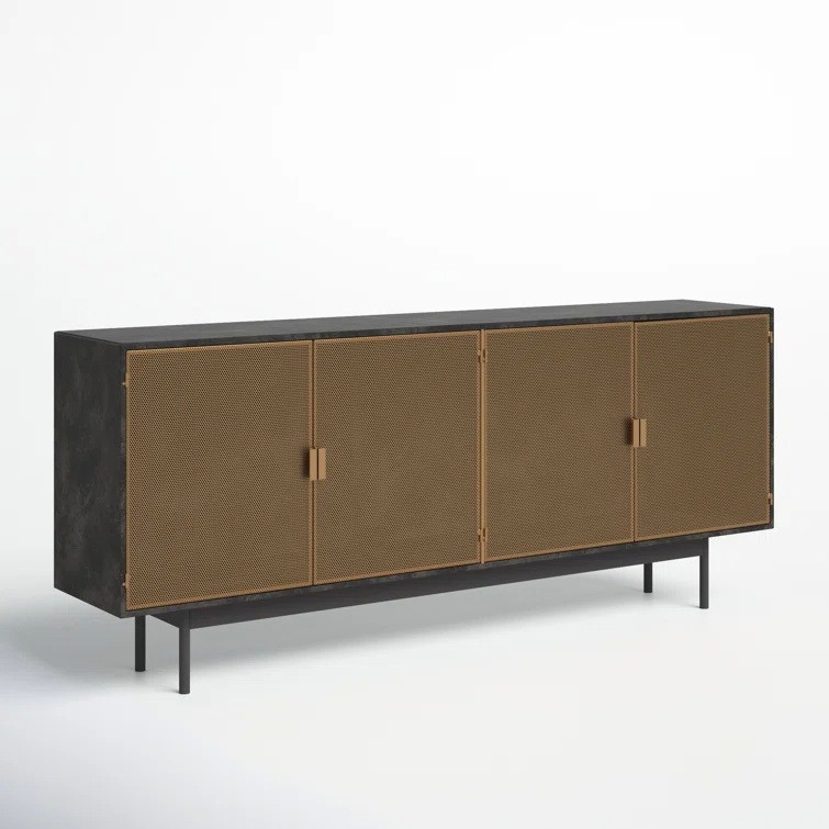 This is a spectacular sideboard that is guaranteed to elevate your space. It offers ample storage space for a wide variety of items ranging from kitchenware and table linen to décor and accessories. The doors add a touch of vibrancy to this piece. It is a sturdy, functional, and visually enticing addition to any dining room. Built to stand the test of time, it guarantees exceptional stability and balance while ensuring that your kitchenware and other items are securely stored. Designed to suit industrial homes, it flaunts an all-metal construction in a radiant, two-tone palette with a sleek silhouette, perforated patterns, and exposed door hinges.