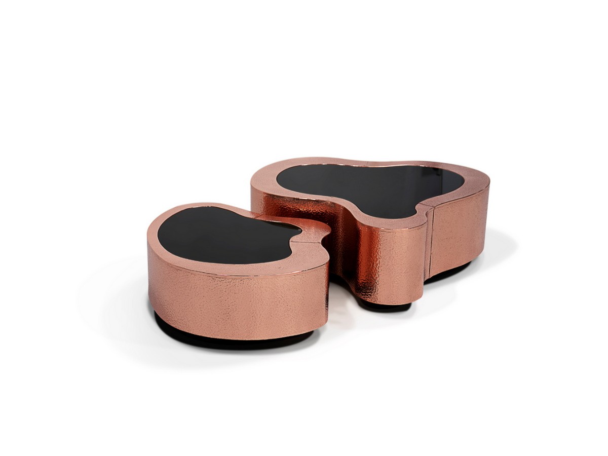 Wave Small Center Table, by Boca do Lobo, with great style and elegance creates an exclusive ambiance for your modern interiors. It is an original and stylish coffee table for a modern living room as it is also an unconventional center table for your sitting room. True classics never fail to make an impression and this is certainly the case for the Wave Small Center Table from Boca do Lobo. Nowadays, the traditional coffee table is no longer the only way to decorate the living room; recently coffee tables are taking original shapes and designs that give the living room a whole unique look through unusual forms and new materials. Developed by a Portuguese jewelry artisan, Wave Small Center Table is made of hand-hammered copper with a black mirror top.