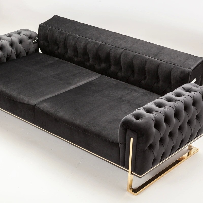 Anyone with a penchant for unusual furniture should take a closer look at the Tokyo Sofa. This is where modern optics meets traditional features. The backrest features a trendy pattern, adding a retro vibe to the sofa. Also, the combination of golden metal feet and two decorative cushions - every furniture lover's dream.