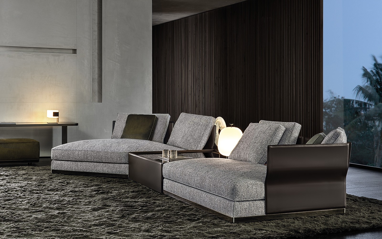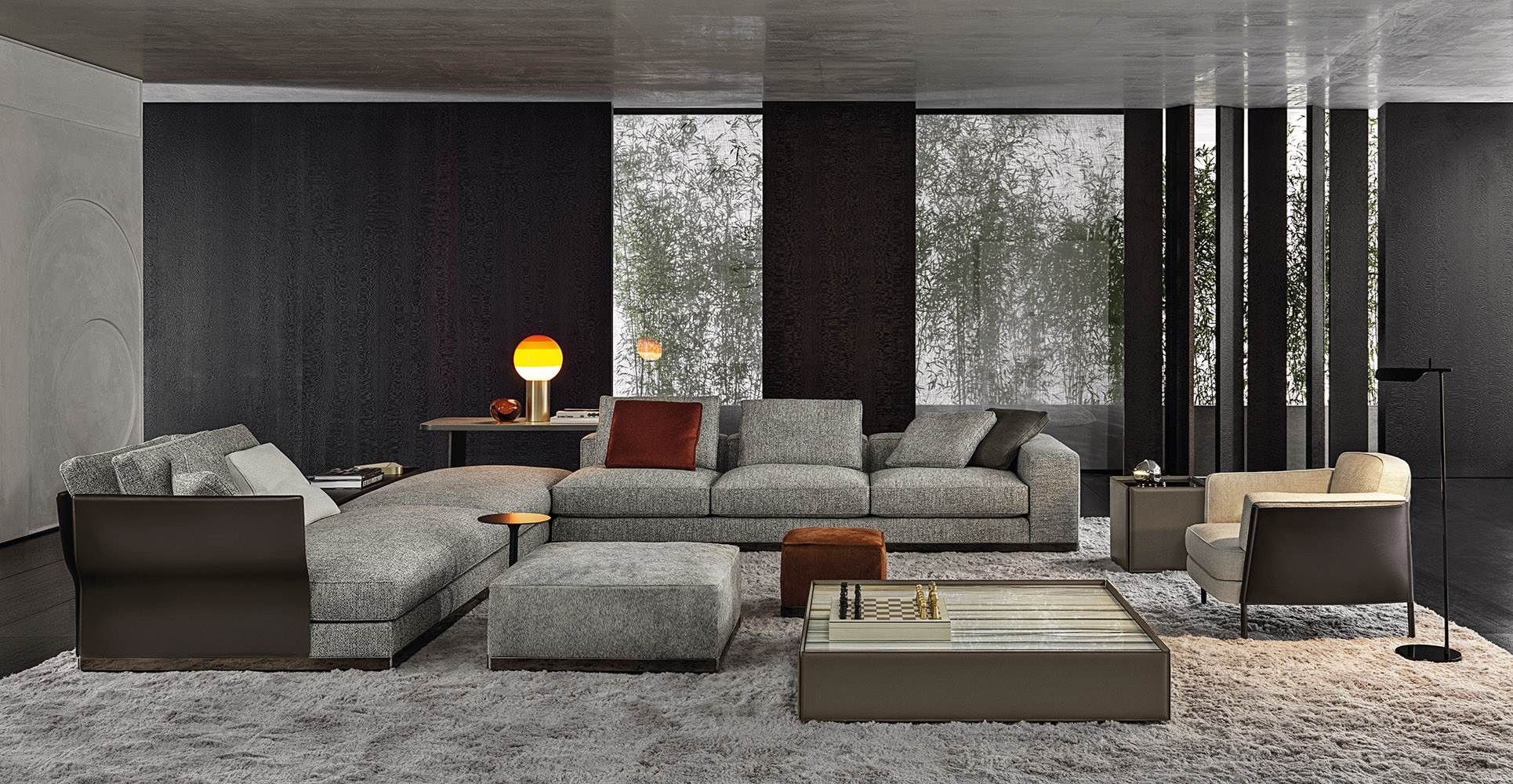 A faceting effect livens up and interrupts the cubism that sets the morphology of the West system apart from the modern design. Characterised by its suitability for use in a wide range of different contemporary and traditional arrangements. sofa also features glints of pure creativity. such as the chaise-longue, available in pentagonal or hexagonal form and the elements that stand out for their striking backrests in saddle hide. ergonomically shaped to rise and support the rear cushion.
