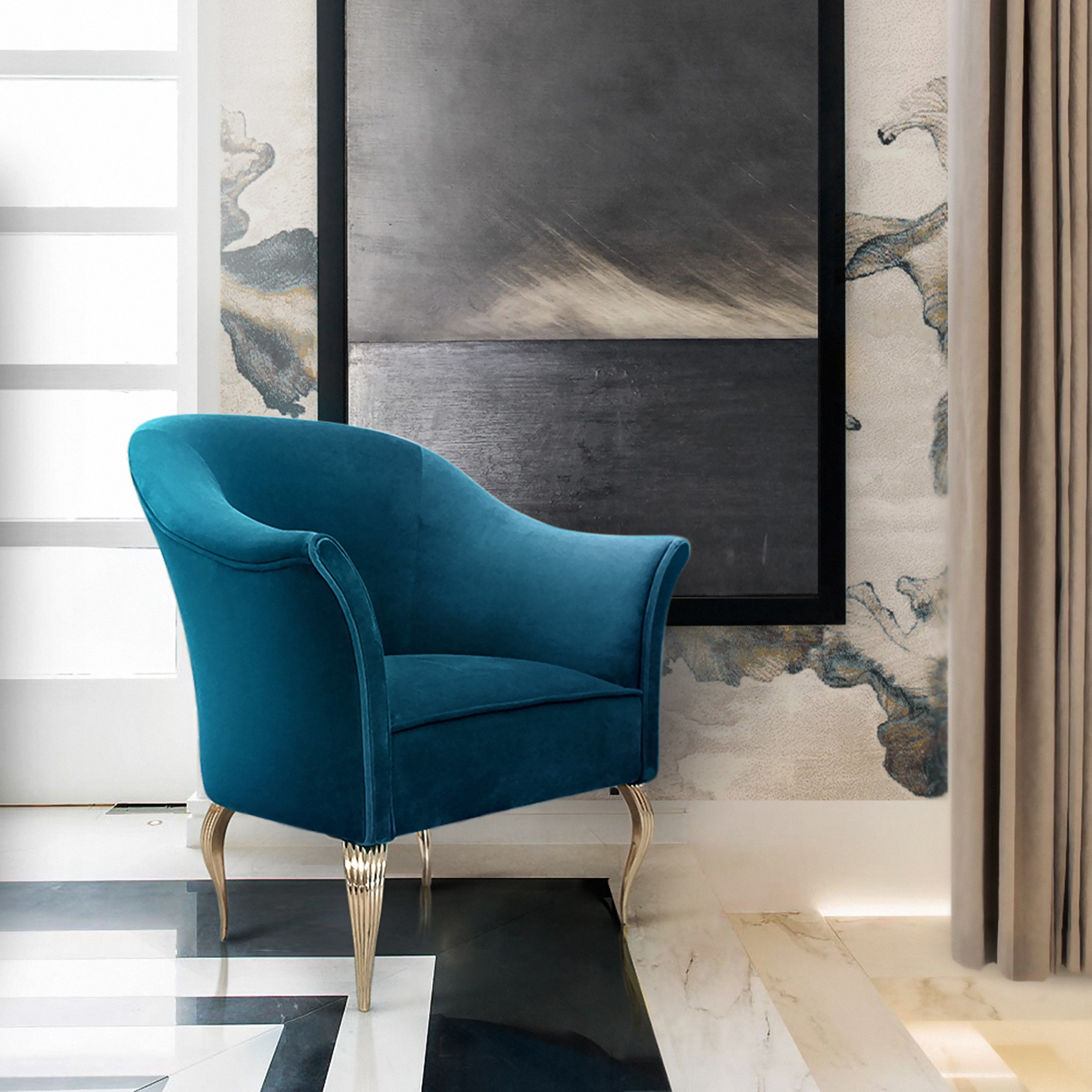 Mimi is the sophisticated and flirty girl-next-door of living room chairs. This simple but sweet small armchair's cozy design hugs your body in cozy upholstery fabric. Her attractive body with modern curves is accented by long, sexy metal legs.