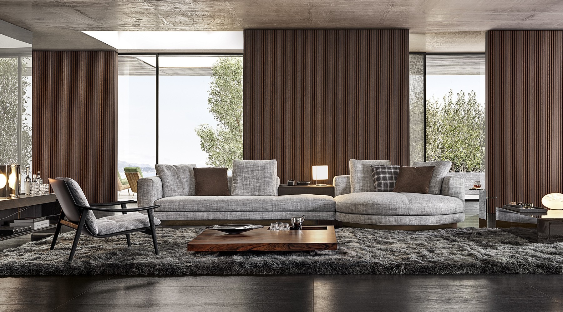 The seating system has a strong architectural appeal and pure lines, reminiscent of the spirit of mid-century America, and its exquisite aesthetics and design immediately attract the eye. Exquisite materials and exquisite details are cleverly combined to add a hint of haute couture to its design.