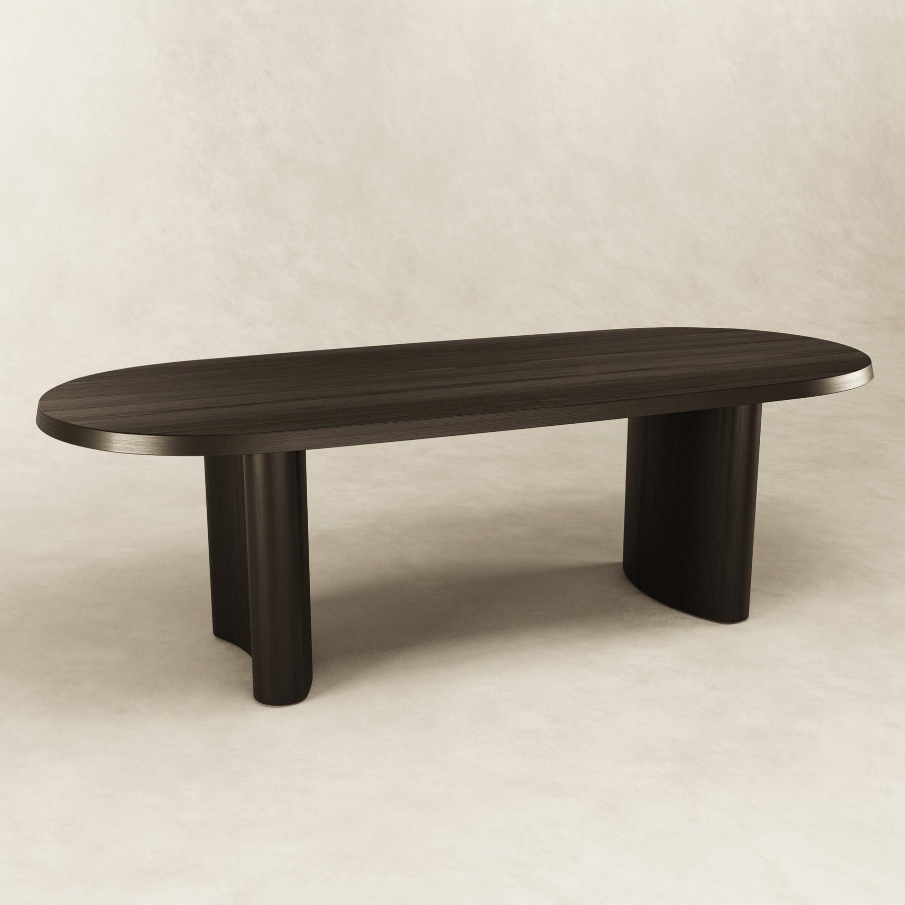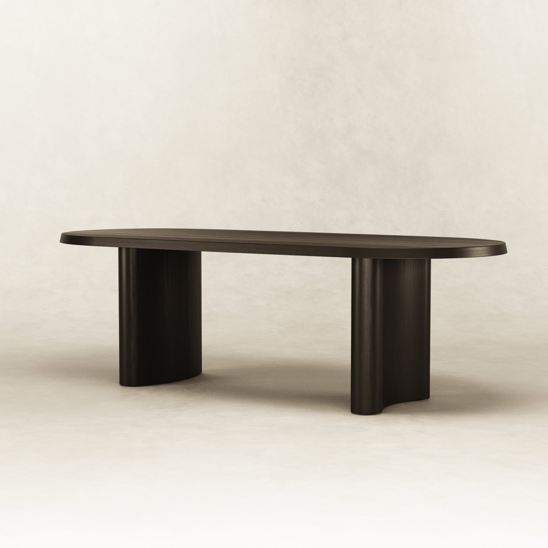 The graceful simplicity of the black dining table allows the American ash wood to be the hero that shines through the soft curved pillars. Spanning 2.4m in length, 6 seats can generously fit around.