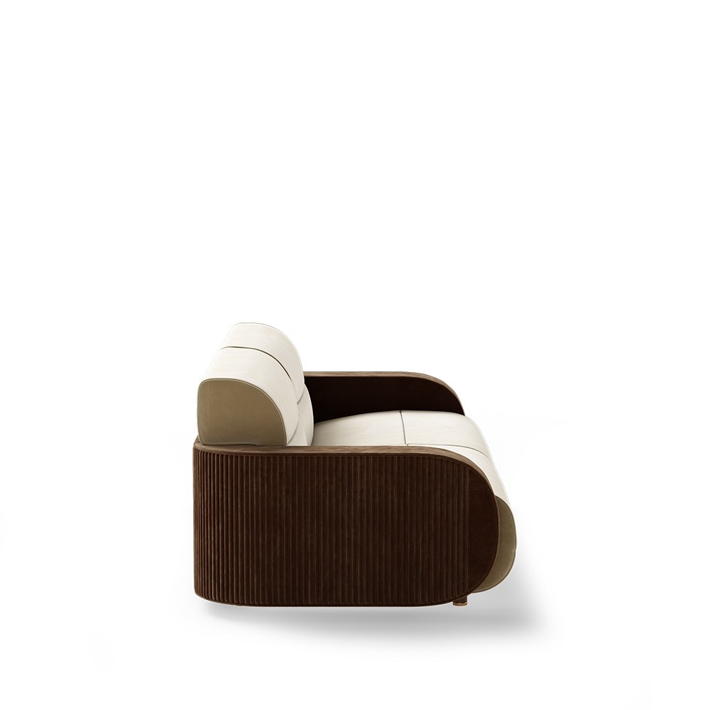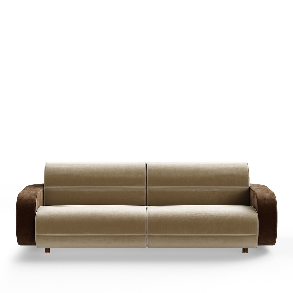 Rollins is the perfect sofa to fulfill your sophisticated mid- century project. The pattern design on the arms and back, combined with the brass base, made this sofa an elegant choice to be the spotlight in any living room.