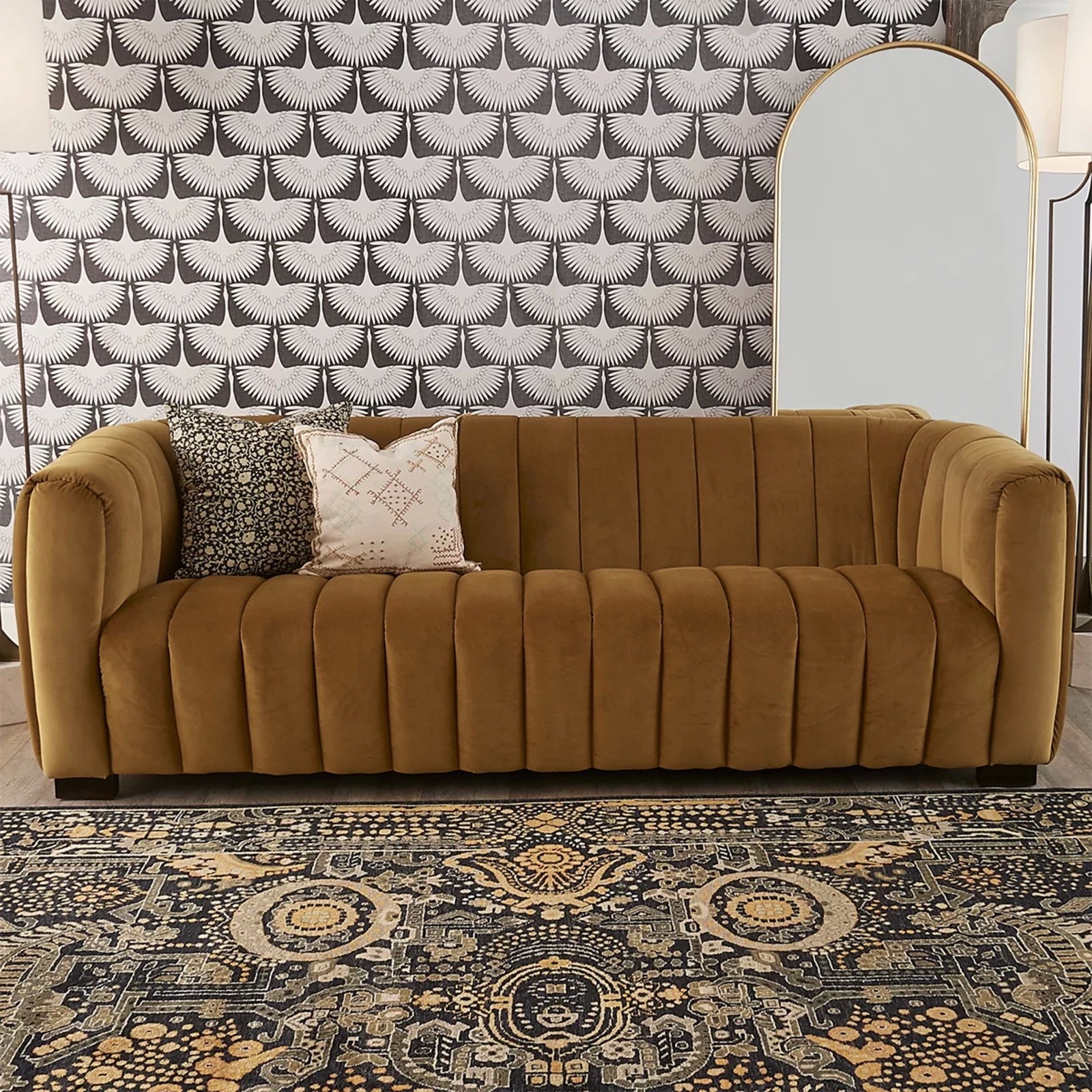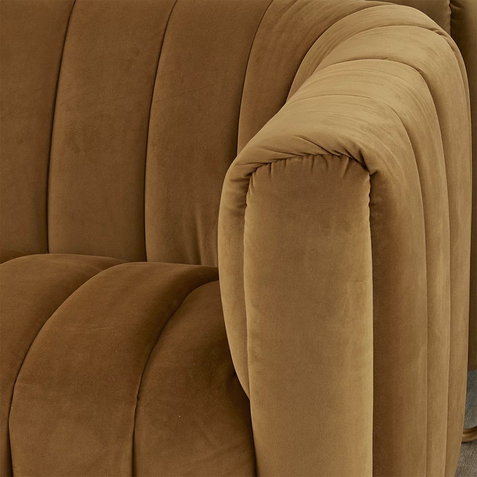 This luxurious and glamorous sofa is an eye-catcher in a modern, eclectic, boho or contemporary room. The opulent interior exudes soft luxury in a rich palette that offers a standout twist on neutral tones.