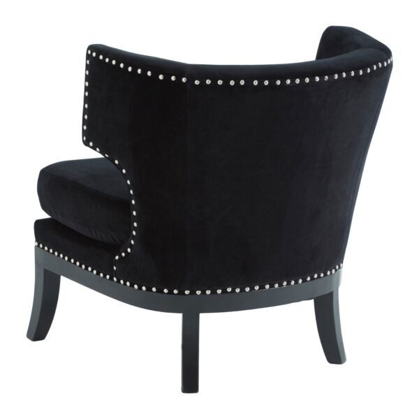 The armchair adds elegance and sophistication to any room setting. Upholstered in soft black velvet. style with the cushions for a chic stately look.