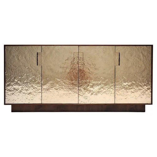 Hammered Bronze Fire Patina and Walnut Sideboard