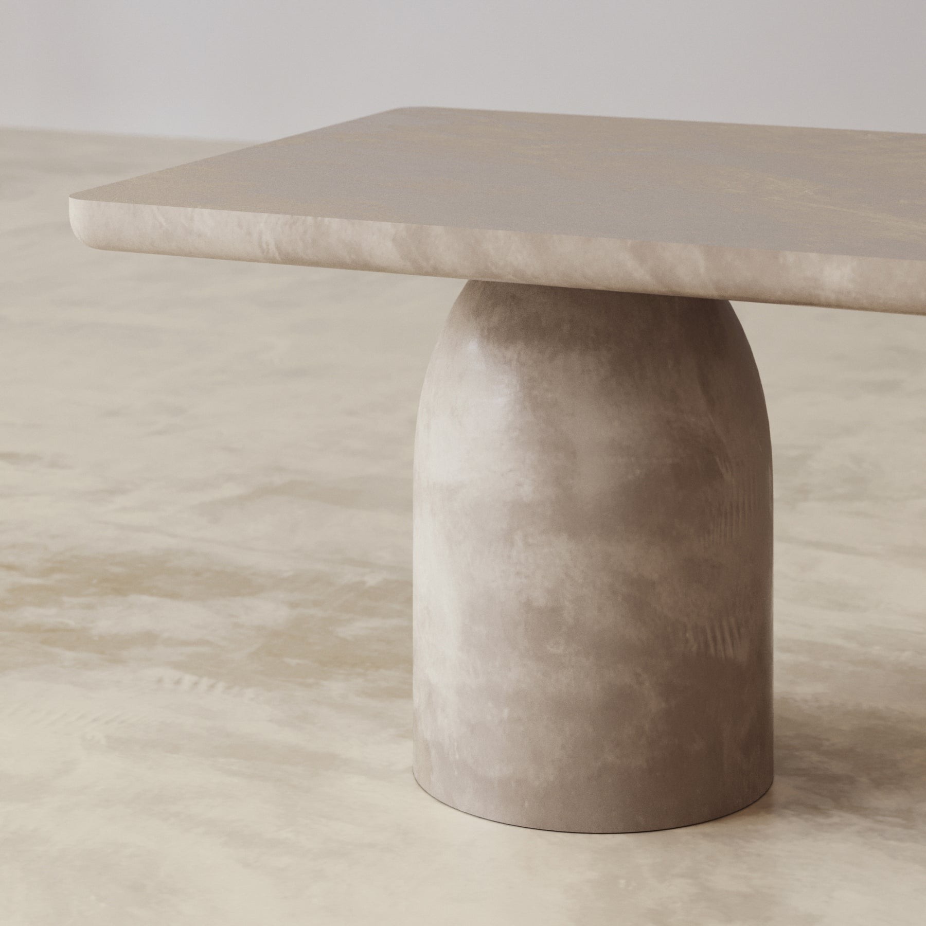 The Bullet dining table evokes architectural structure and form with its featured domed base being the centre of attention. Crafted by hand from a screeded micro cement, the dining table is neutral in finish giving it a warm look that will blend in with most colour schemes. An intricate design to manufacture, ensuring stability, form and aesthetic appeal all in one magnificent table. Measuring a generous 2.4m in length, 6-8 seats should fit comfortably around this designer table.